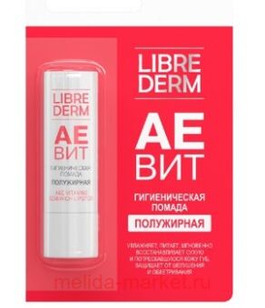 Состав (полужирной гигиенической помады АЕВИТ):petrolatum, mineral oil, ozokerite, cera alba, phenyl trimethicone, butyrospermum parkii (shea butter), candelilla cera, persea gratissima (avocado) oil, coconut oil refined, tocopheryl acetate, retinyl palmitate, silica dimethyl silylate, parfum, BHT.